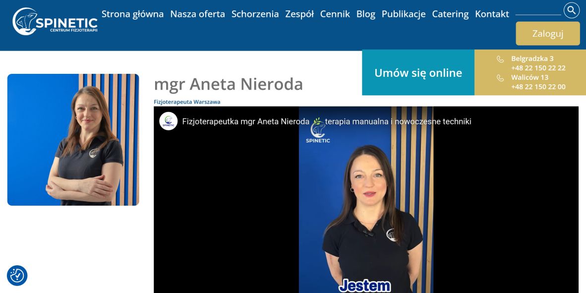 mgr Aneta Nieroda – Fizjoterapeuta Warszawa Ursynów, Fizjoterapeuta Wola